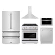 ZLINE Kitchen Package with Refrigeration, 30" Stainless Steel Gas Range, 30" Range Hood, Microwave Drawer, and 24" Tall Tub Dishwasher (5KPR-SGRRH30-MWDWV)