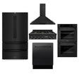 ZLINE Kitchen Package with Refrigeration, 36 in. Black Stainless Steel Gas Range, 36 in. Convertible Vent Range Hood, 30 in. Double Wall Oven, and 24 in. Tall Tub Dishwasher (5KPR-RTBRH36-AWDDWV)