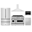 ZLINE Kitchen Package with Refrigeration, 48 in. Stainless Steel Gas Range, 48 in. Convertible Vent Range Hood, 24 in. Microwave Drawer, and 24 in. Tall Tub Dishwasher (5KPR-RGRH48-MWDWV)