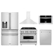 ZLINE Kitchen Package with Water and Ice Dispenser Refrigerator, 36" Dual Fuel Range, 36" Range Hood, Microwave Drawer, and 24" Tall Tub Dishwasher (5KPRW-RARH36-MWDWV)
